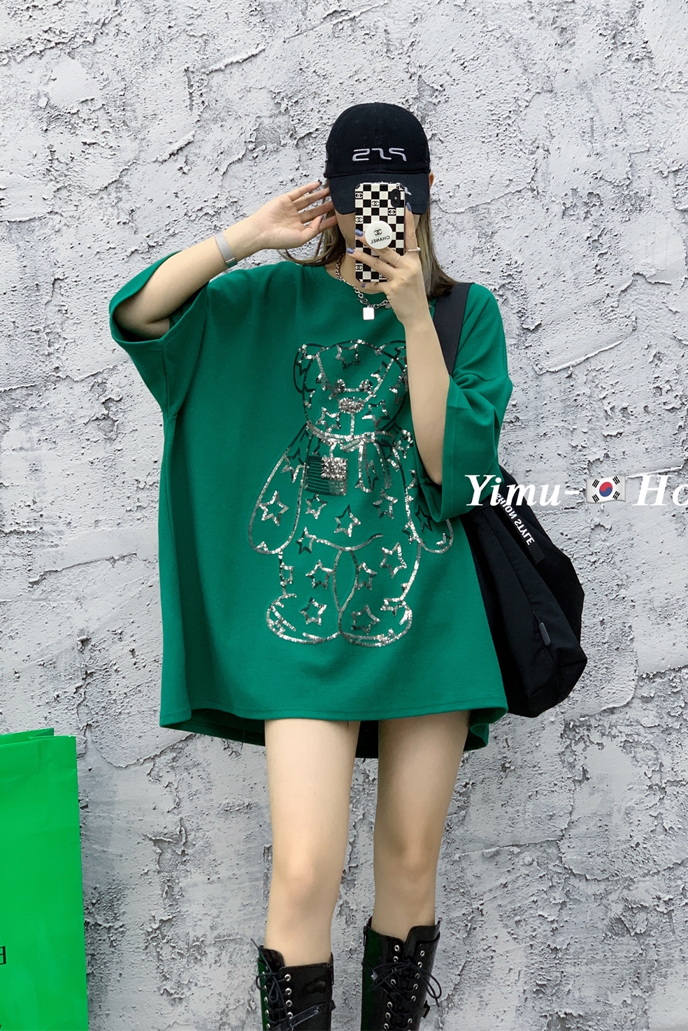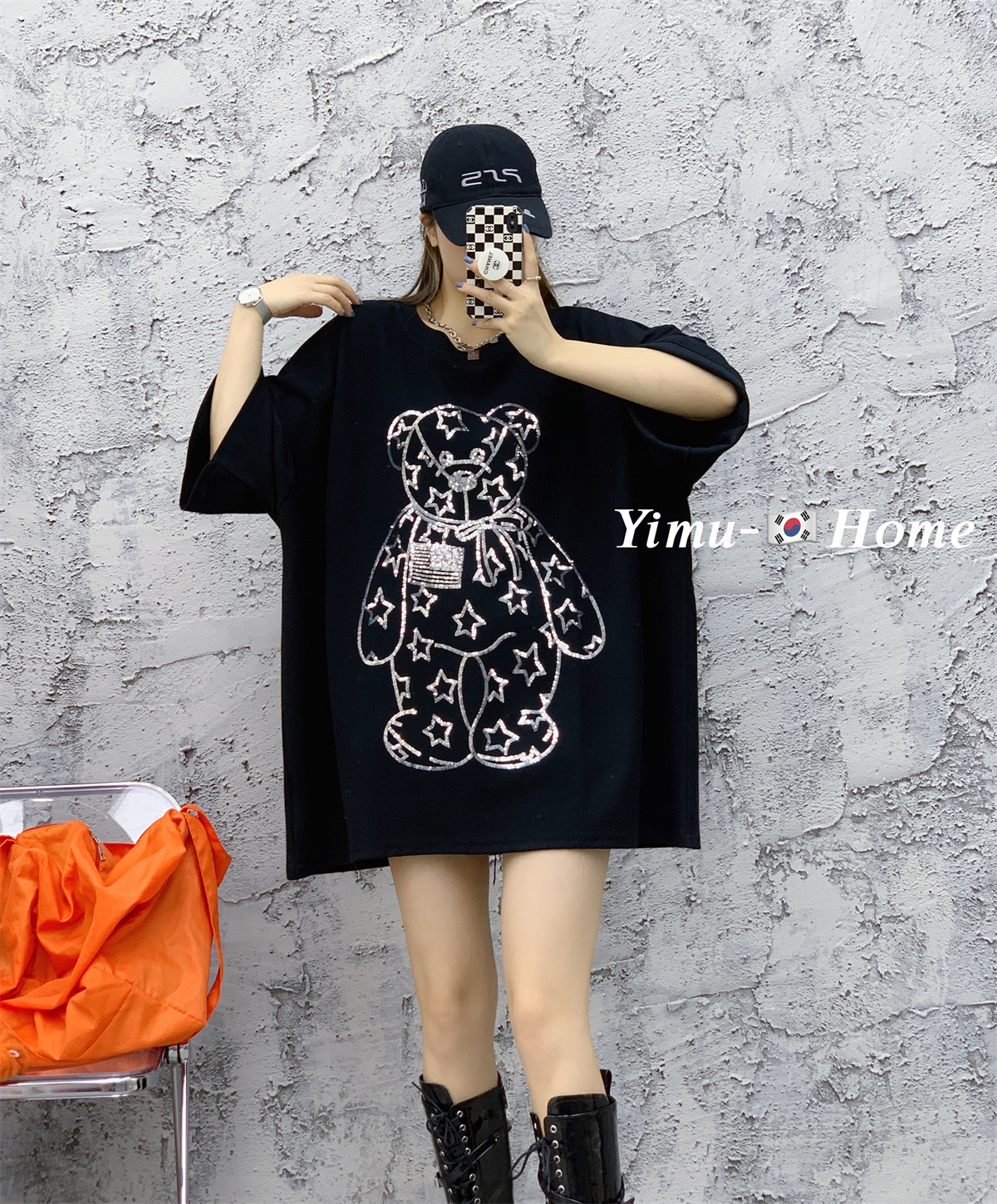 欧洲站时尚亮片中长款打底衫女秋冬宽松大码显瘦白色纯棉短袖t恤