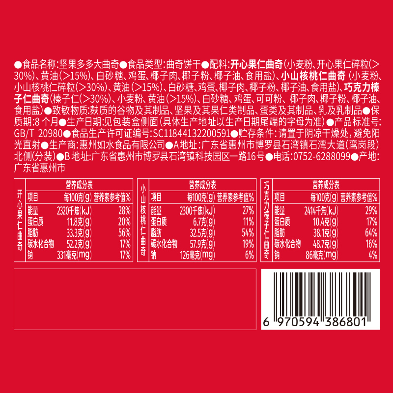 如水多口味曲奇混合坚果曲奇饼铁盒180g