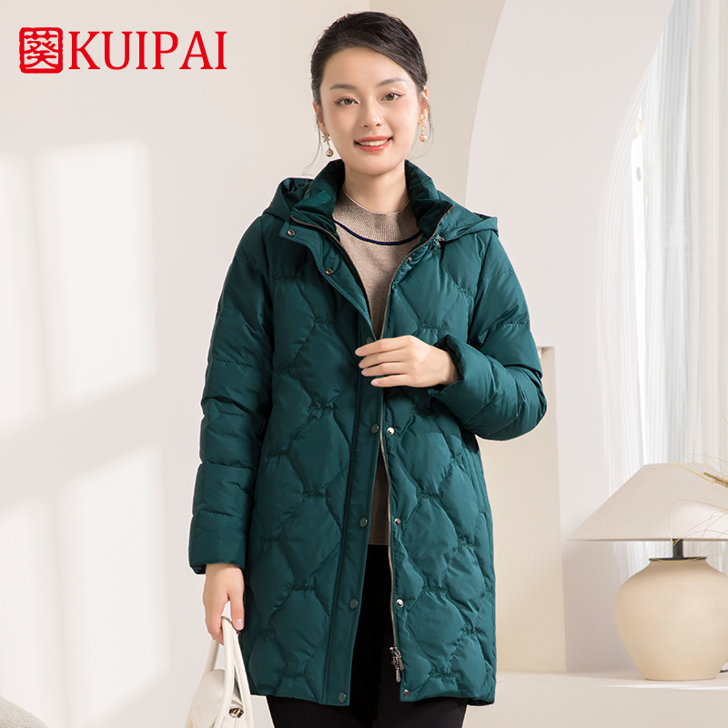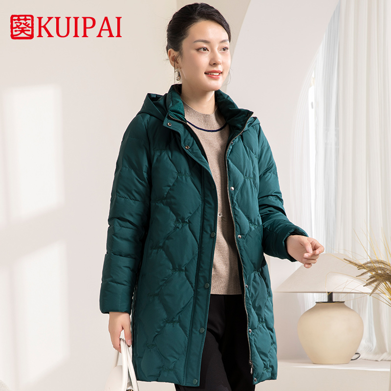 葵牌冬季中长款外套加厚连帽高领保暖中老年妈妈女装羽绒服