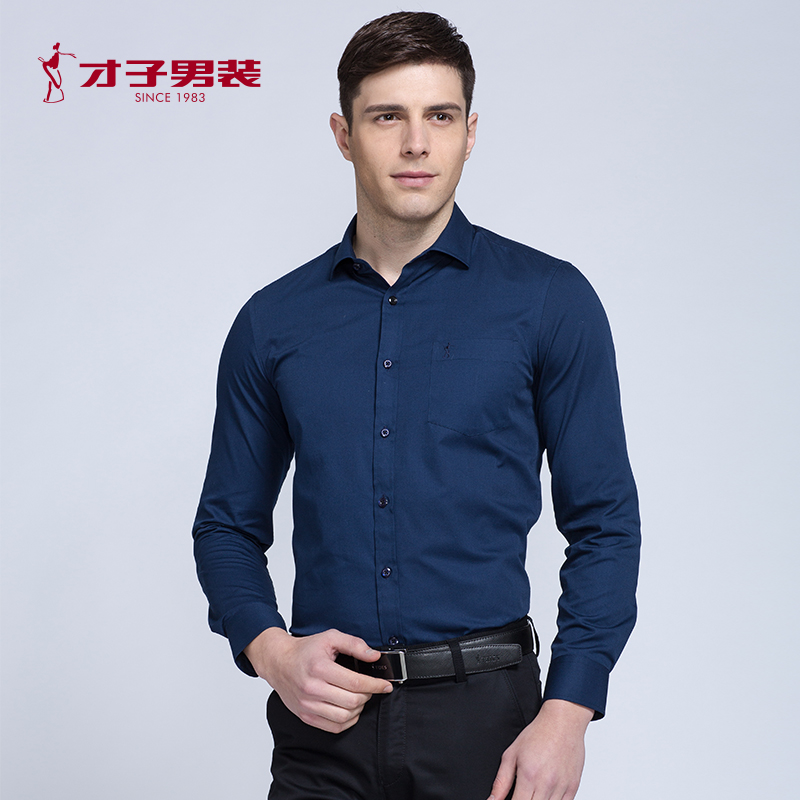 才子男装衬衫男长袖正品男装薄款纯色商务休闲衬衣修身官方