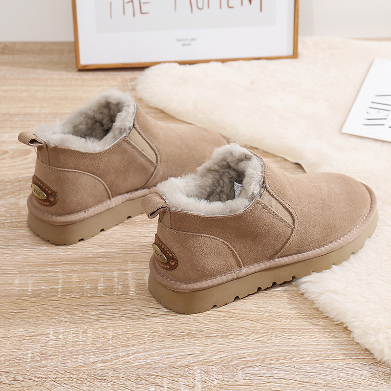 皮毛一体雪地靴女短筒2022年新款牛皮羊毛短靴冬加绒保暖加厚棉鞋