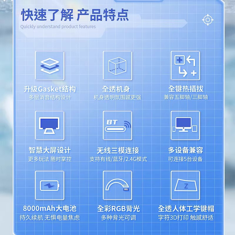 AULA狼蛛NB98无线三模机械键盘 2.4G全透明客制化游戏电竞笔记本