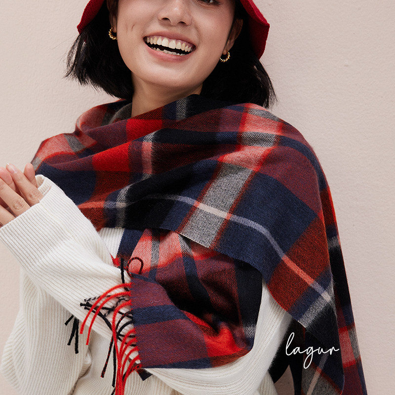 浪漫红色圣诞英伦纯山羊绒围巾女