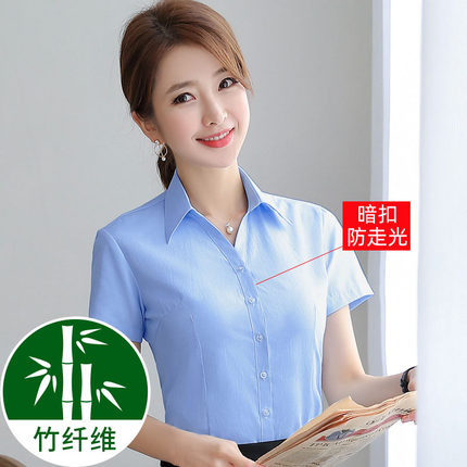 蓝色衬衫女短袖夏天职业装正装白色衬衣工装logo定制半袖上班寸衣