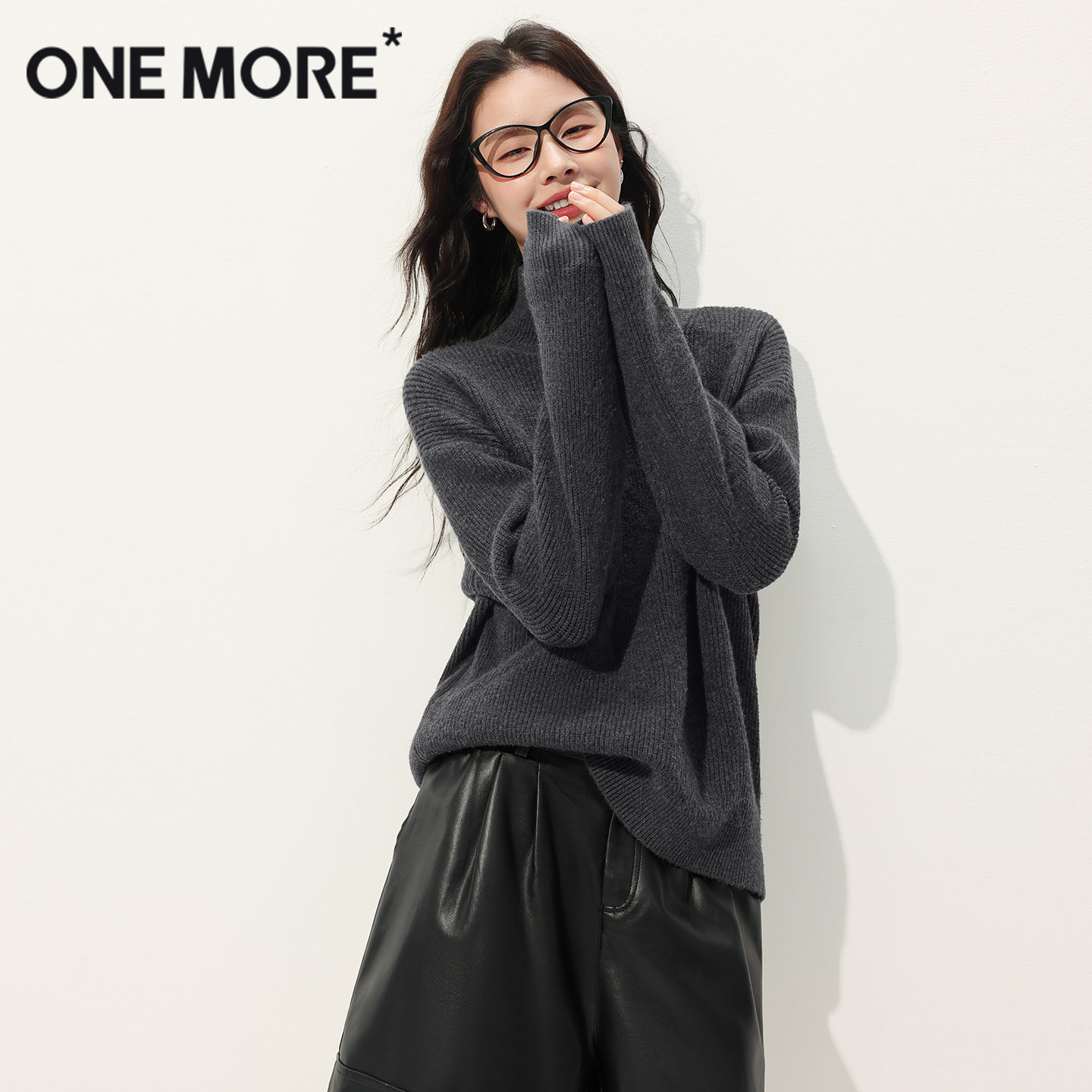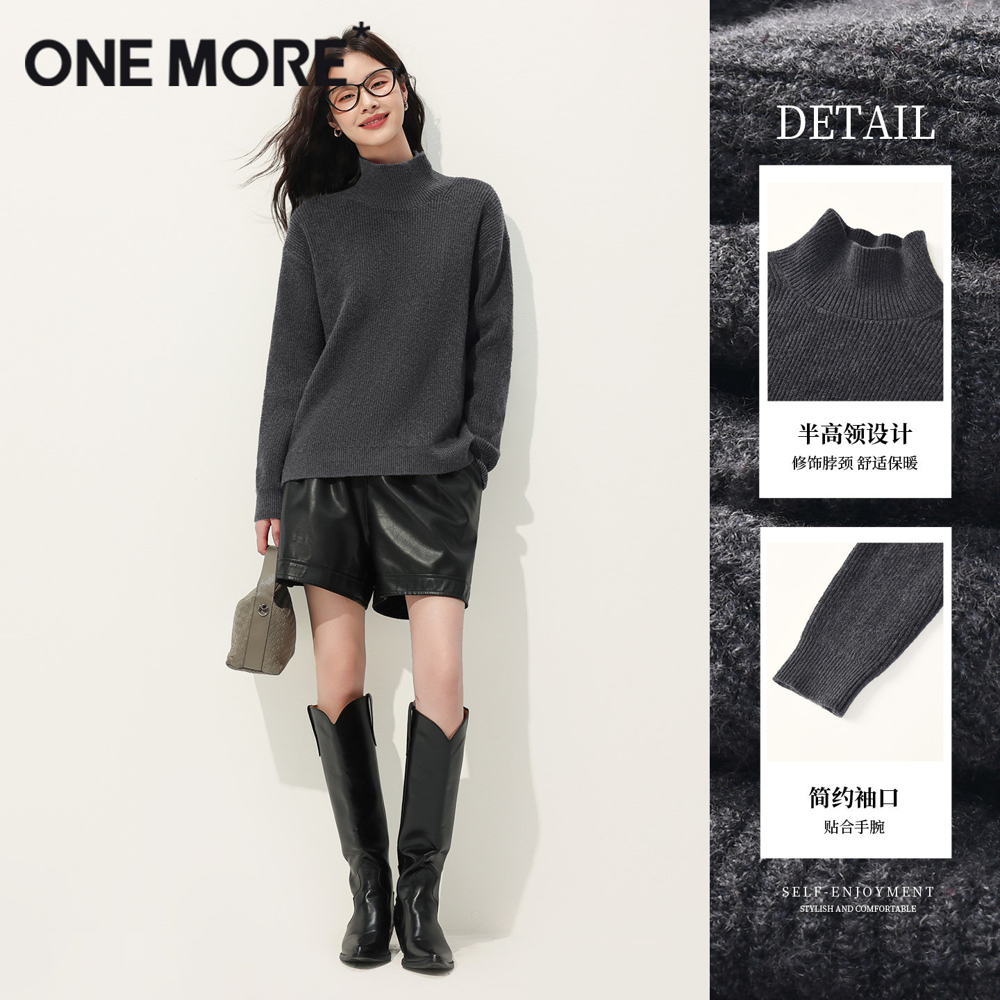 one more灰色针织衫女2025新款巨好看的早秋穿搭半高领保暖毛衣X