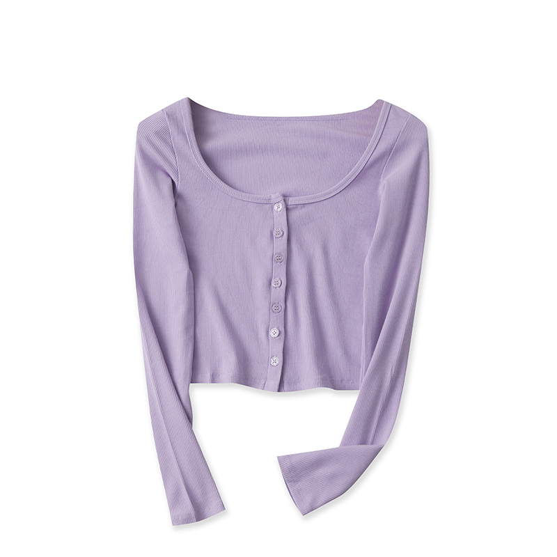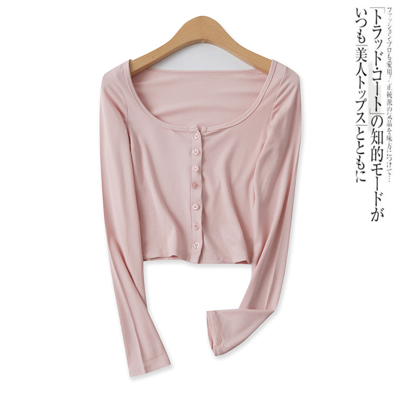 长袖螺纹T恤百搭显瘦单排扣开衫