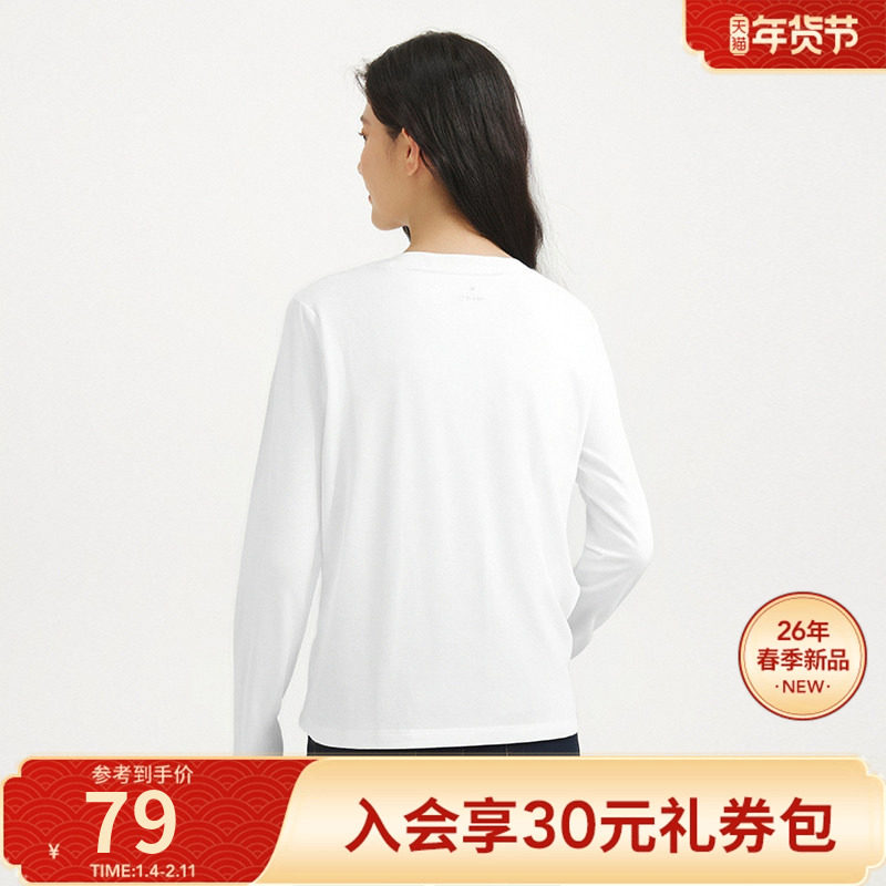 热风2026年春季新款女士基础长袖T舒适纯棉柔软亲肤打底衫