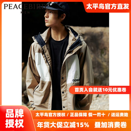 【可拆卸】太平鸟男装户外工装夹克秋新款三合一宽松茄克潮外套