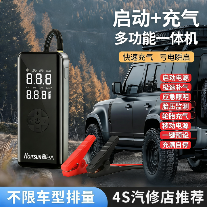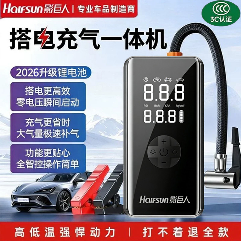 影巨人汽车搭电充气一体机电瓶应急启动电源车载充气泵打火搭电宝
