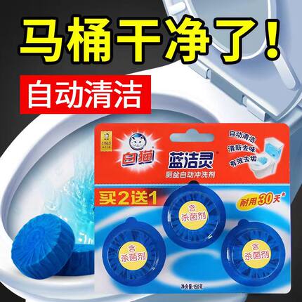 白猫蓝洁灵厕盆自动冲洗剂50g/粒耐用30天蓝泡泡厕所马桶除臭家用