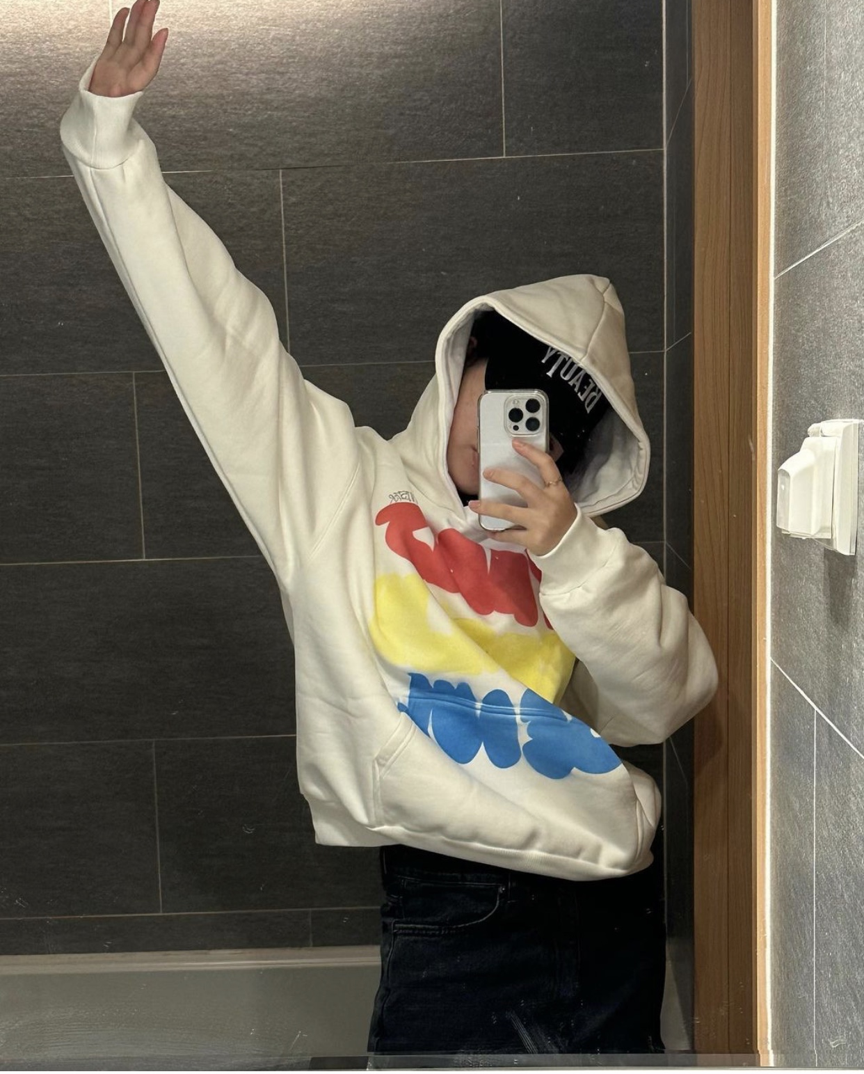 凡他姨【拽辣学妹】加绒白色连帽卫衣女冬季印花宽松长袖套头上衣