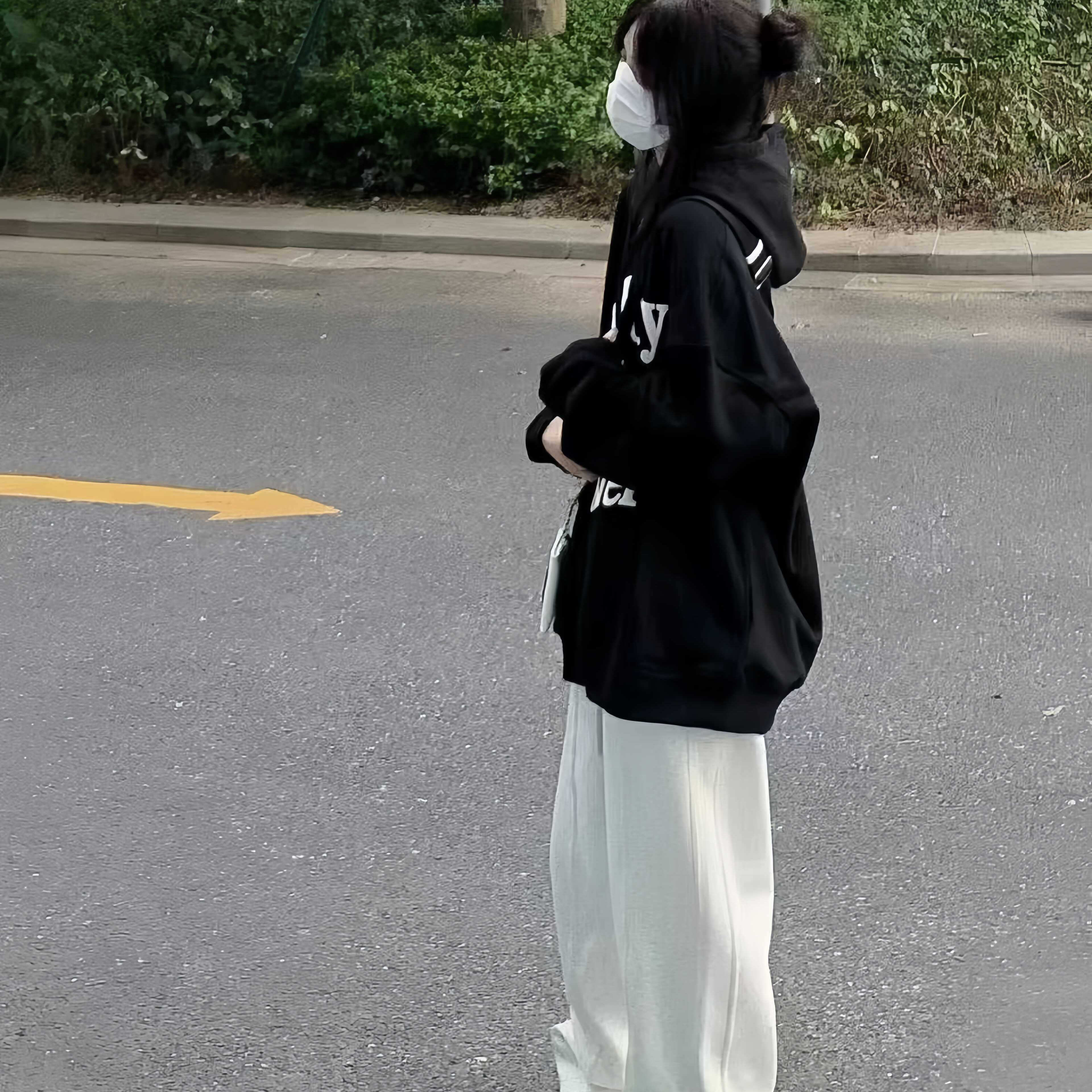 潮牌纯棉连帽卫衣女秋冬季初中高中学生加绒加厚慵懒风外套上衣