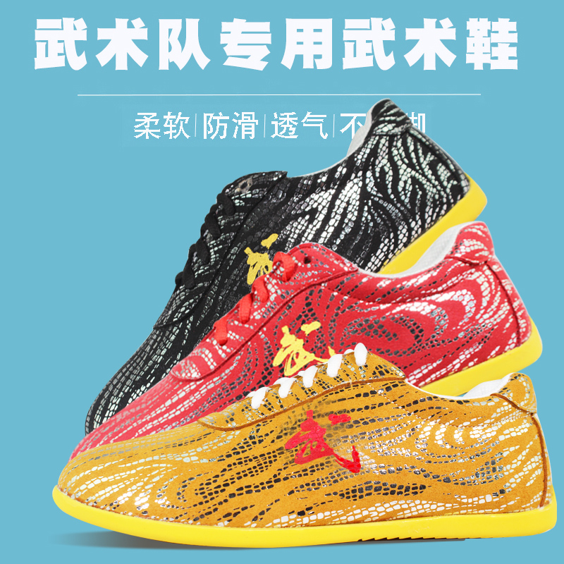 乔尚专业武术鞋儿童训练鞋牛筋底软底真皮竞技比赛练功夫运动鞋