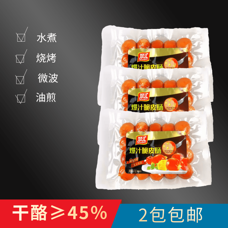 双汇脆皮肠仔200g芝士肠清真煮烧烤微波油煎商用火腿肠香肠鸡肉肠