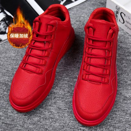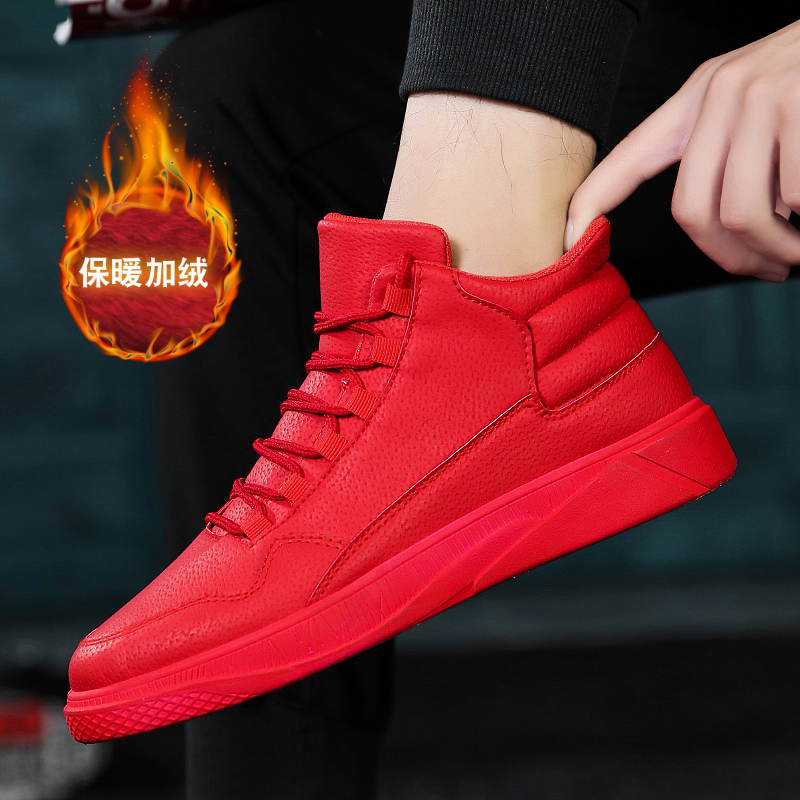 加绒红色鞋子男冬天本命年高帮