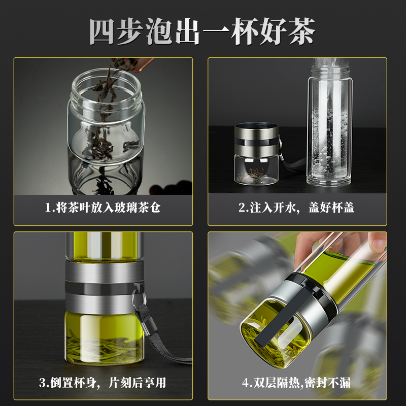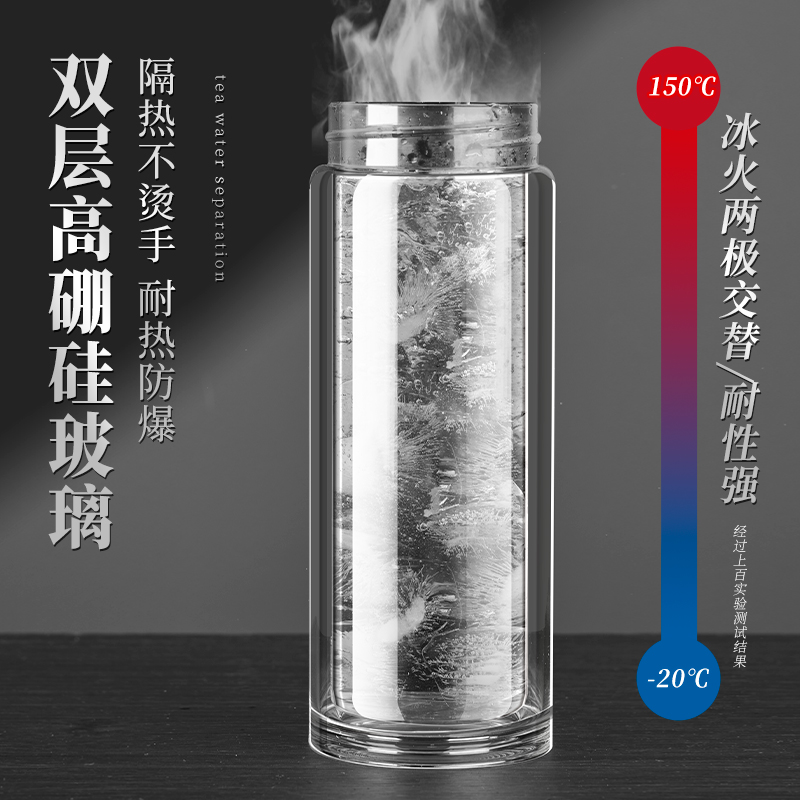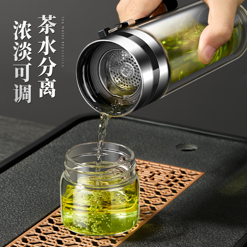 茶杯茶水分离杯子水杯男士高档双层玻璃办公室茶水分离泡茶杯子