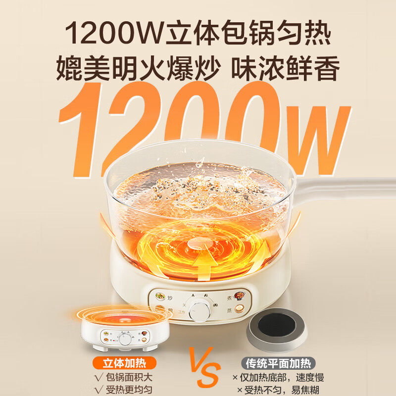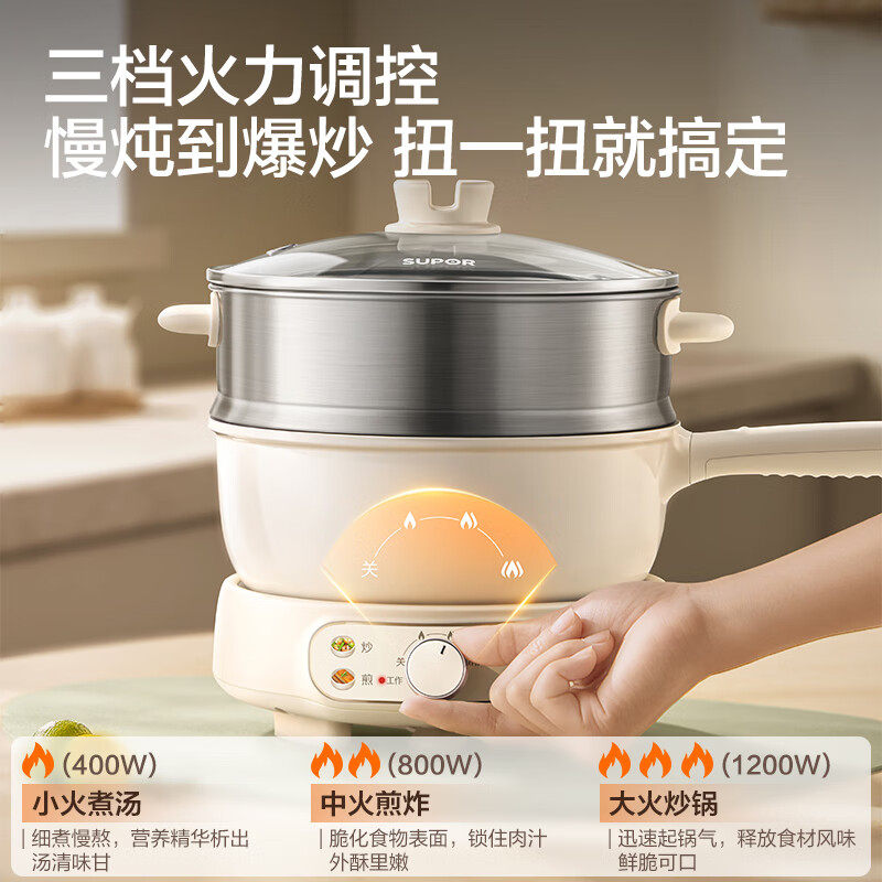 苏泊尔电煮锅多功能小型电炒锅家用宿舍不粘锅分体电火锅2025新款