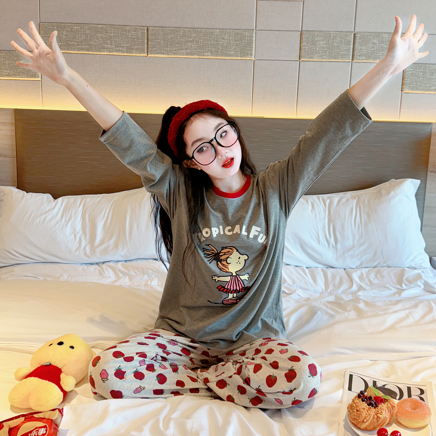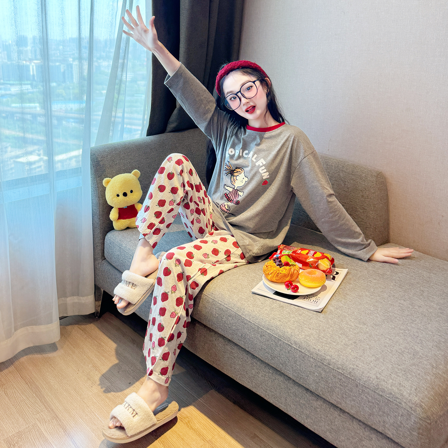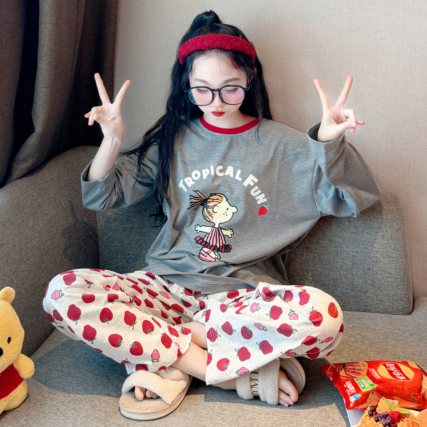 女童长袖睡衣春秋2025新款初中生女大童纯棉套装儿童家居服可外穿