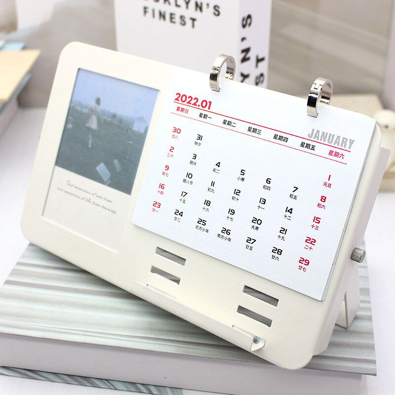 创意桌面摆件2022年相框日历架可翻页日历月历本简约金属相框架