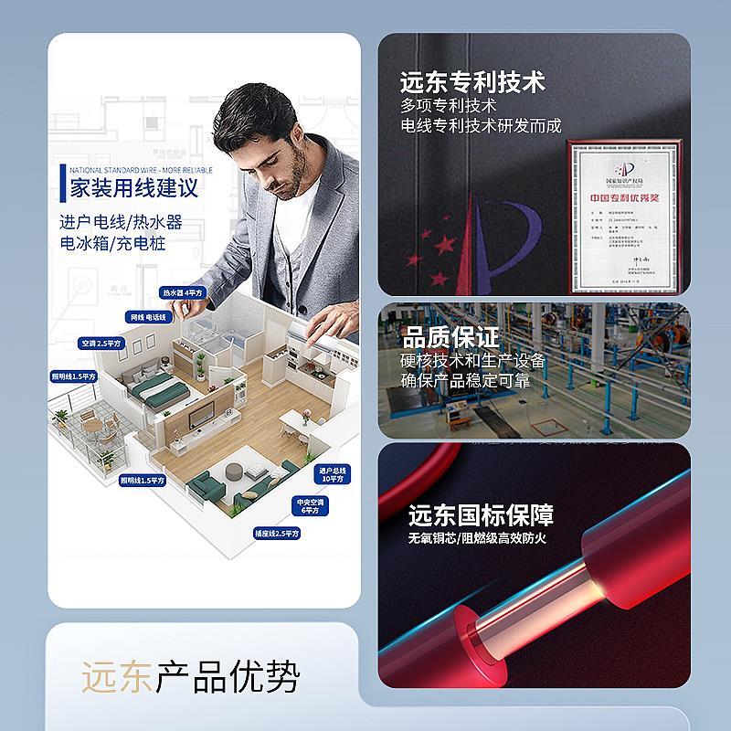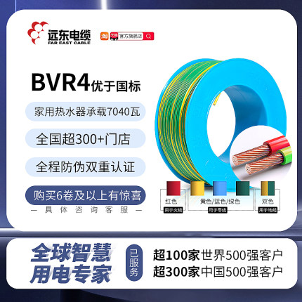 远东电缆BVR4平方阻燃家装国标单芯多股铜芯热水器用电线【软线】