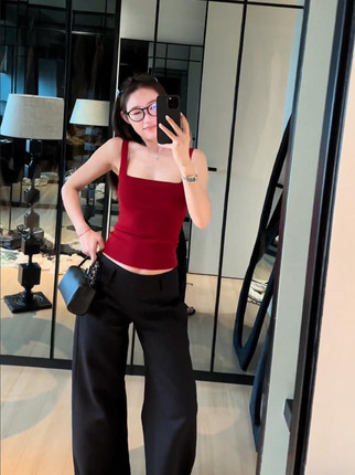 2025新款LA 法式大方领黑色红色遮副乳显瘦紧身小背心纯欲吊带