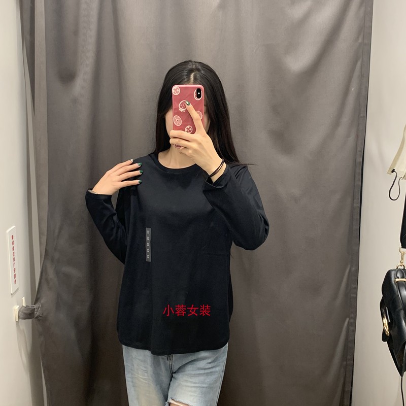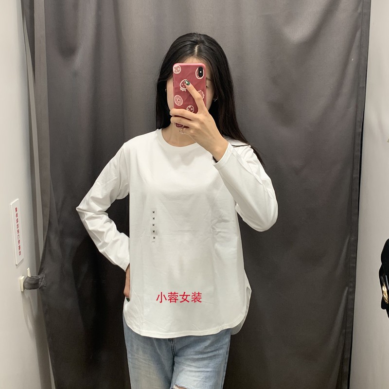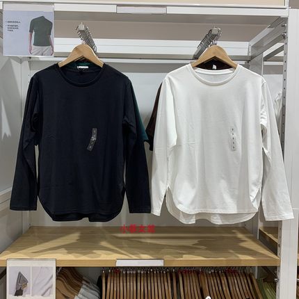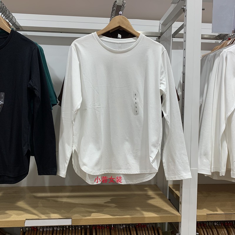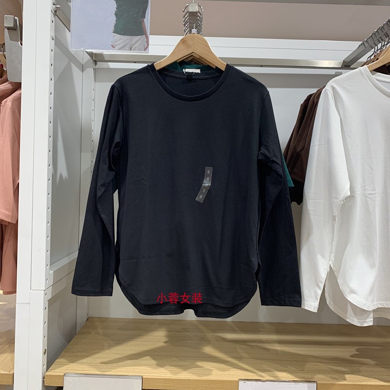 日单女装秋季柔软全棉弧形下摆长袖T恤宽松休闲圆领打底衫Y466669