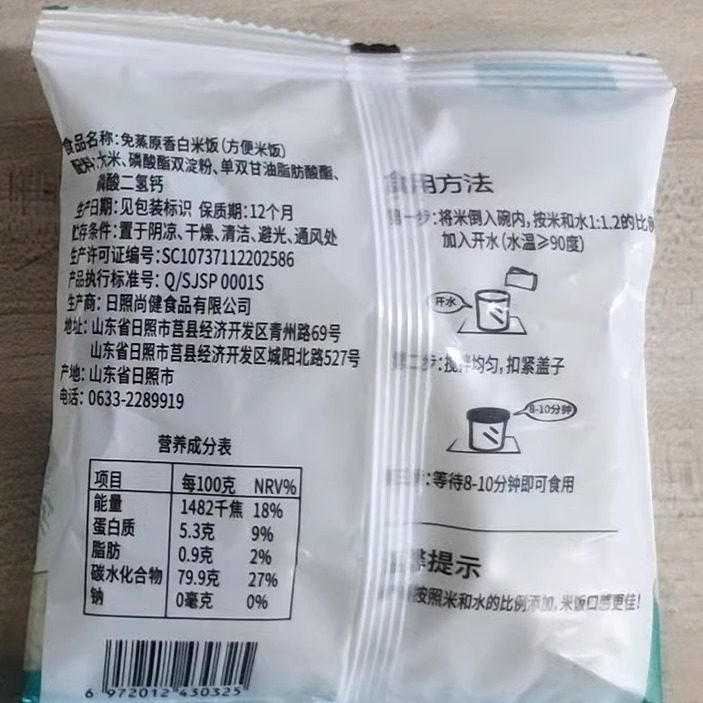 尚健自热饭米包方便米饭开水冲泡速食复水免蒸免煮脱水米户外露营