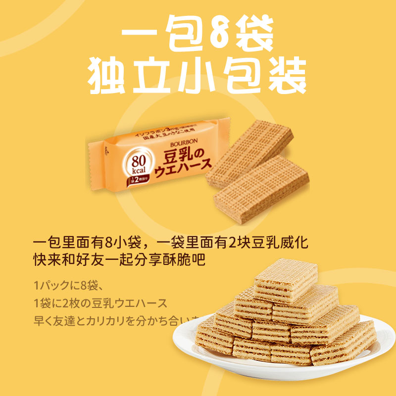 日本进口Bourbon布尔本豆乳威化饼干低脂低卡低热量网红零食小吃