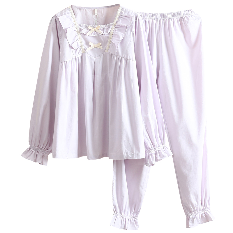 空调房薄款长袖100%全棉斜纹布睡衣女春夏公主风纯棉布家居服套装