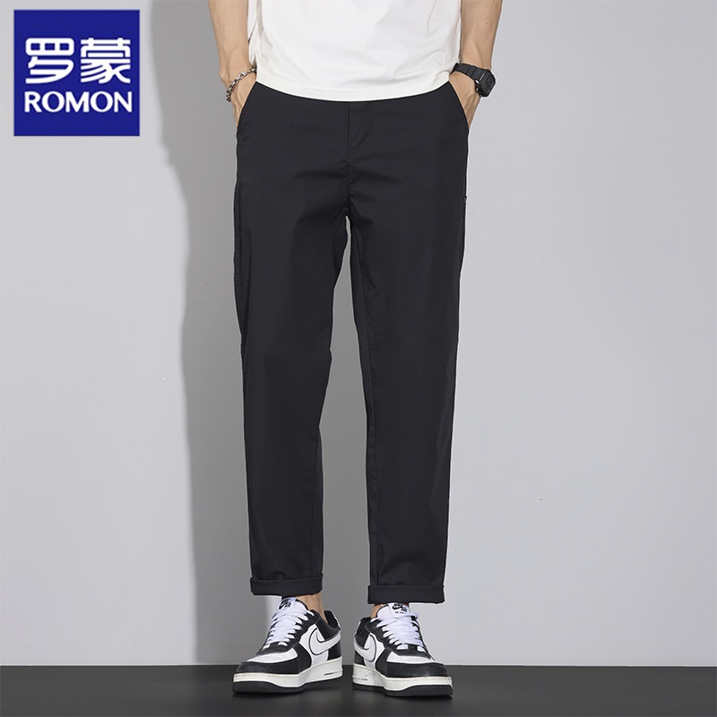 罗蒙高端冰丝休闲裤男士2025夏季薄款宽松直筒商务免烫九分西裤子