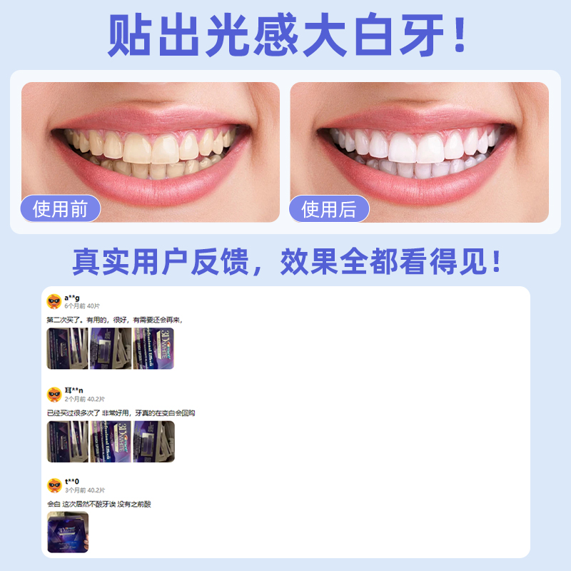 佳洁士牙贴美国版3d强效款炫白牙齿亮白去黄去渍整盒20对40片