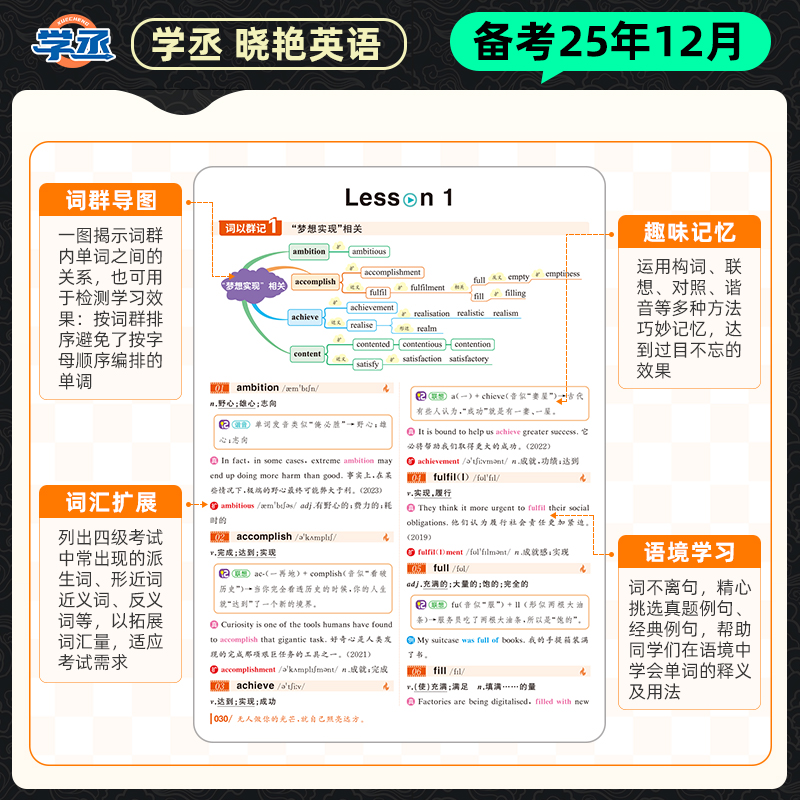 【学丞】刘晓艳英语四级词汇书背四六级单词书刘晓艳就这样过英语四六级英语四级词汇书记单词汇搭大学级刘晓燕四六级网课四级真题