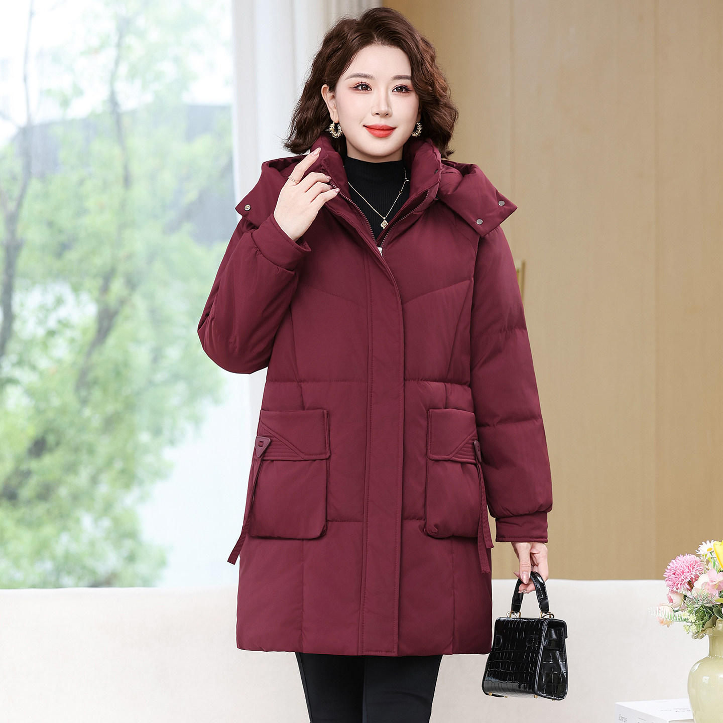 200斤妈妈羽绒棉服冬季中长款洋气休闲棉衣加肥加大中老年女棉袄