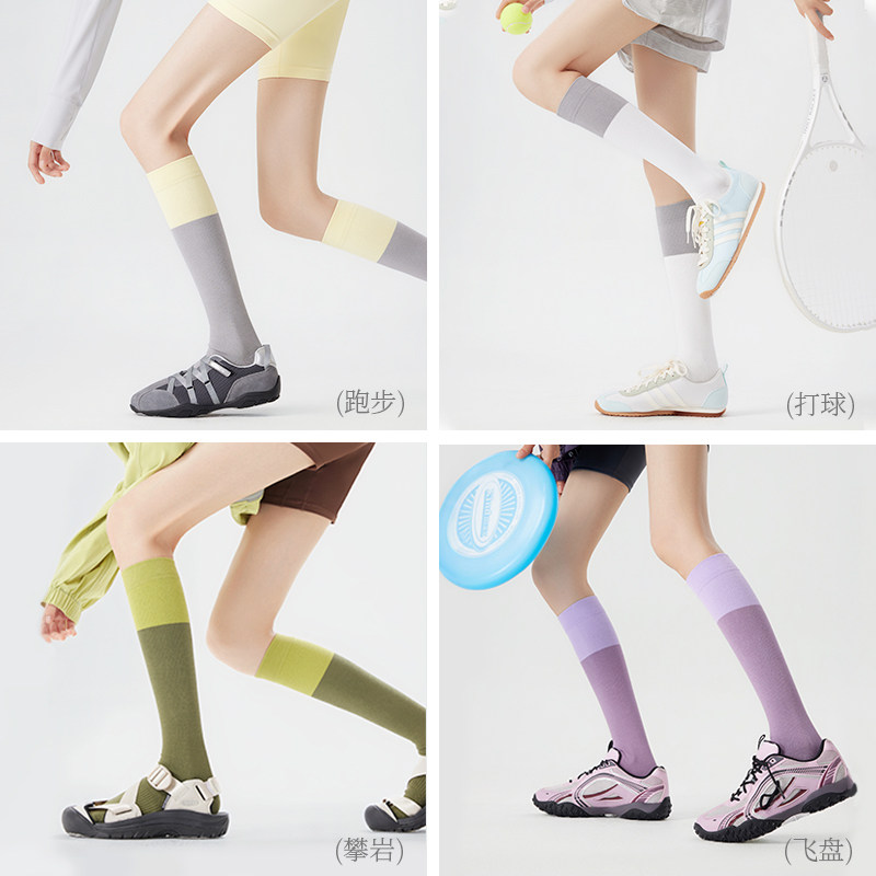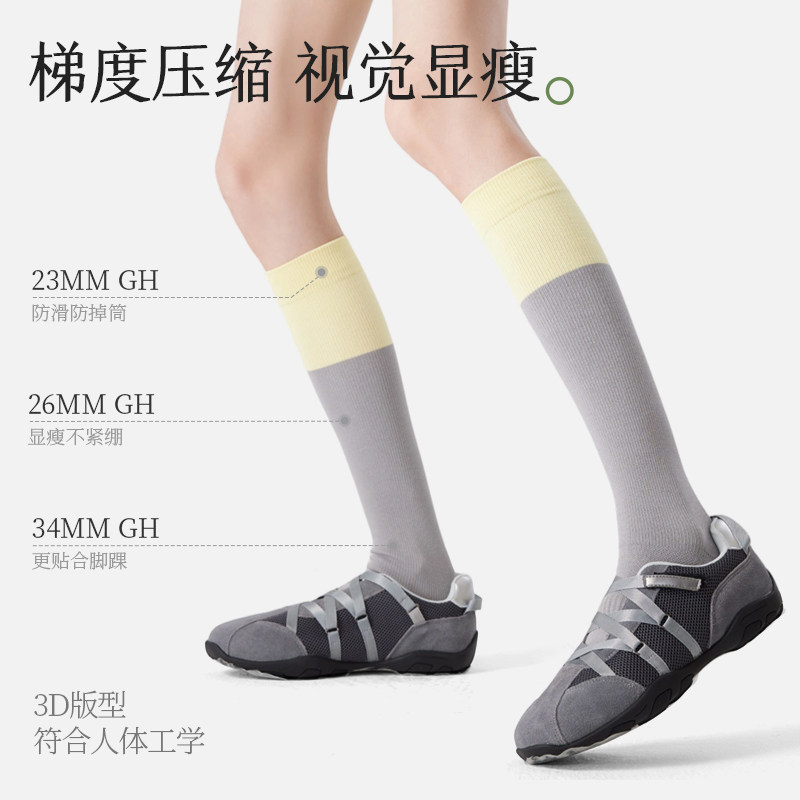 拾袜记撞色运动压力小腿袜显瘦压缩袜户外徒步登山骑行长筒袜子