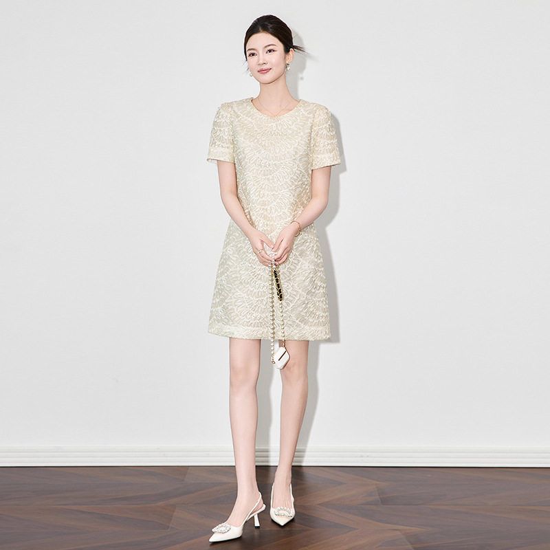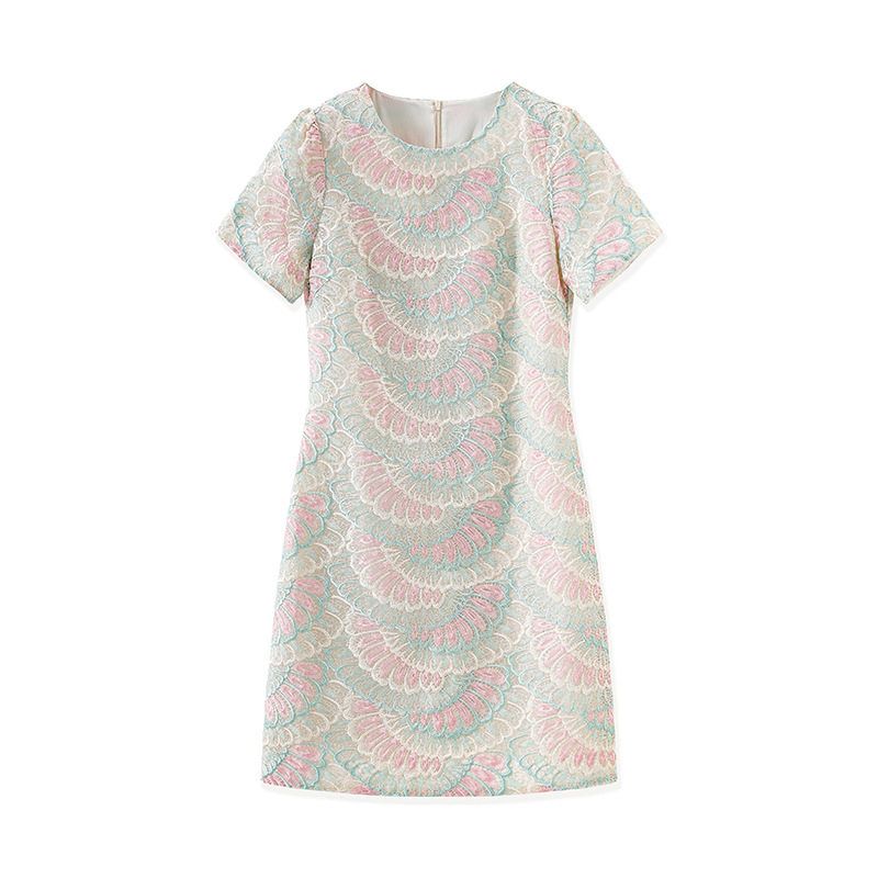 2025女夏新款高级感时尚重工欧根纱彩色刺绣连衣裙礼服显瘦a字裙