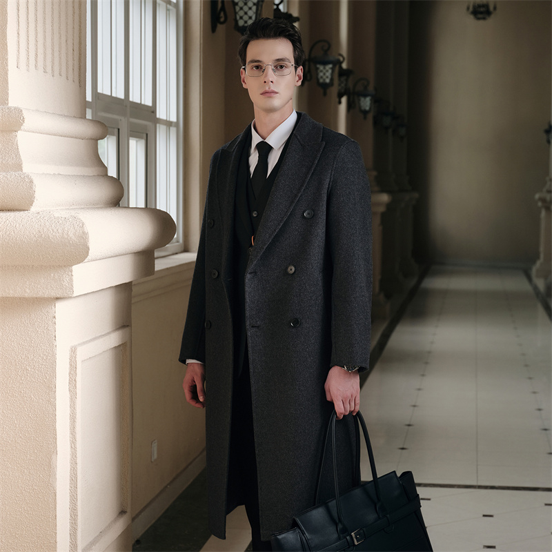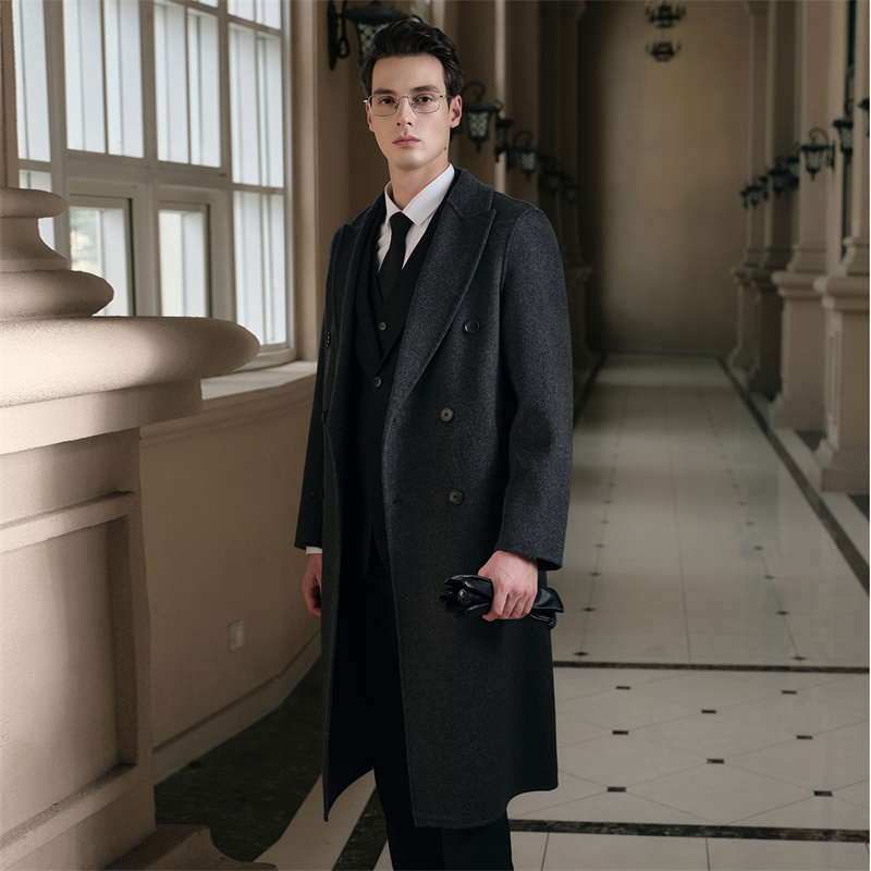 【100%羊毛】男士秋冬双面呢子大衣加厚超长款戗驳领外套羊绒风衣