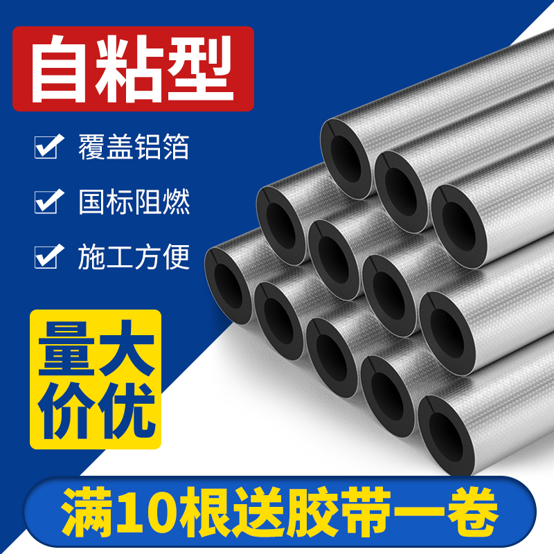 橡塑保温管套B1级铝箔开口自粘室外水管隔热防冻保温棉防火阻燃