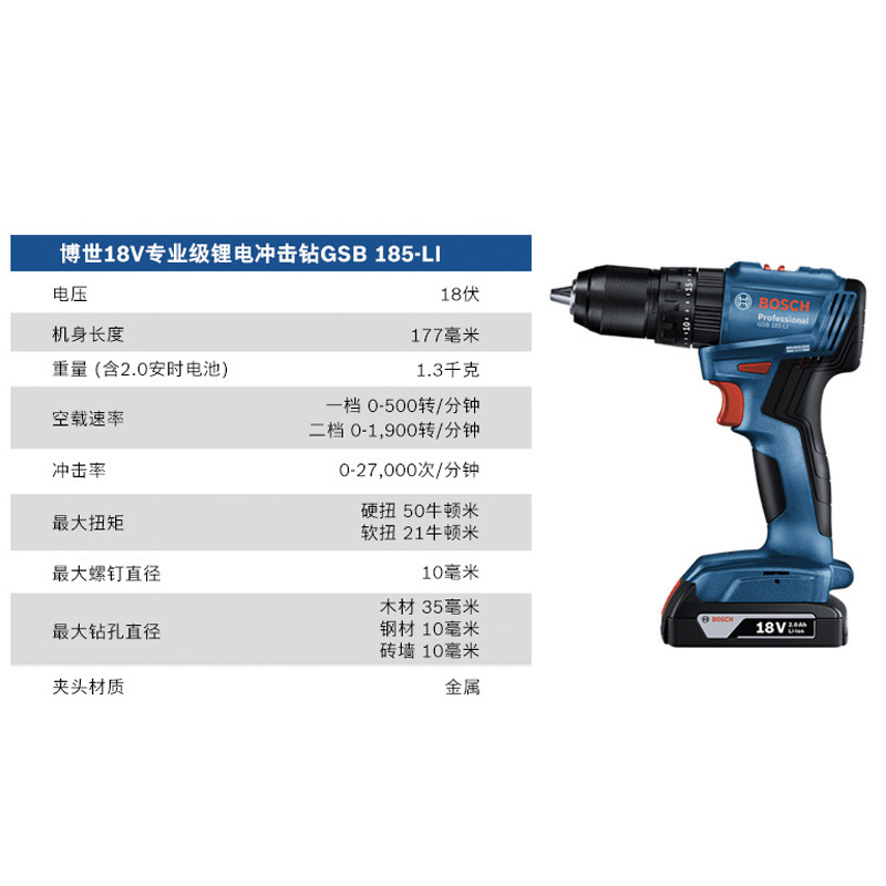 【自营】博世锂电无刷手电钻冲击钻螺丝刀充电式电动工具GSB185