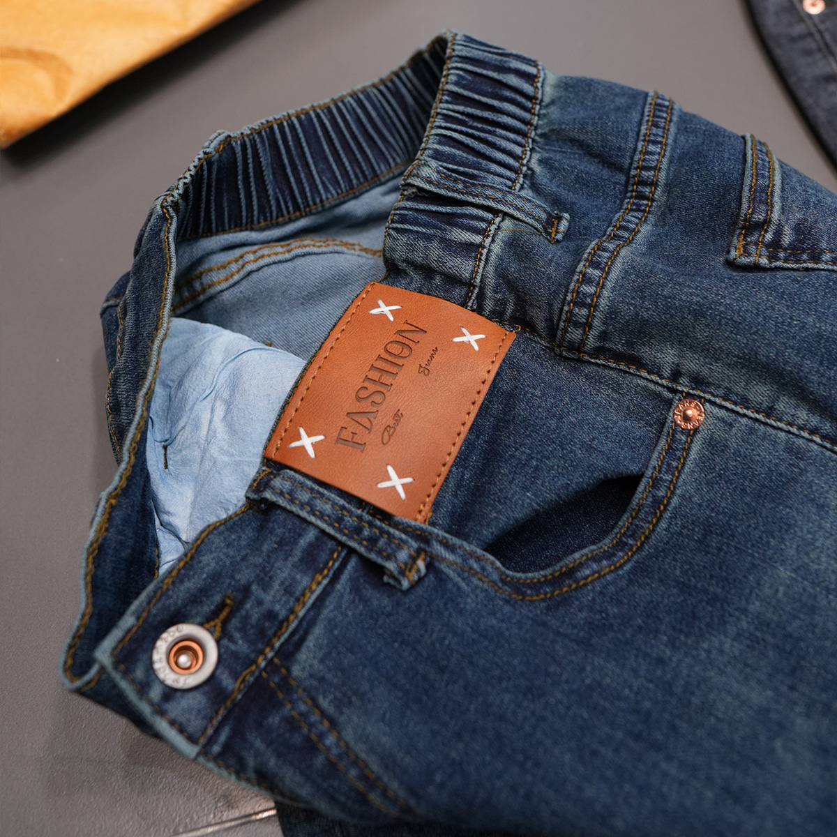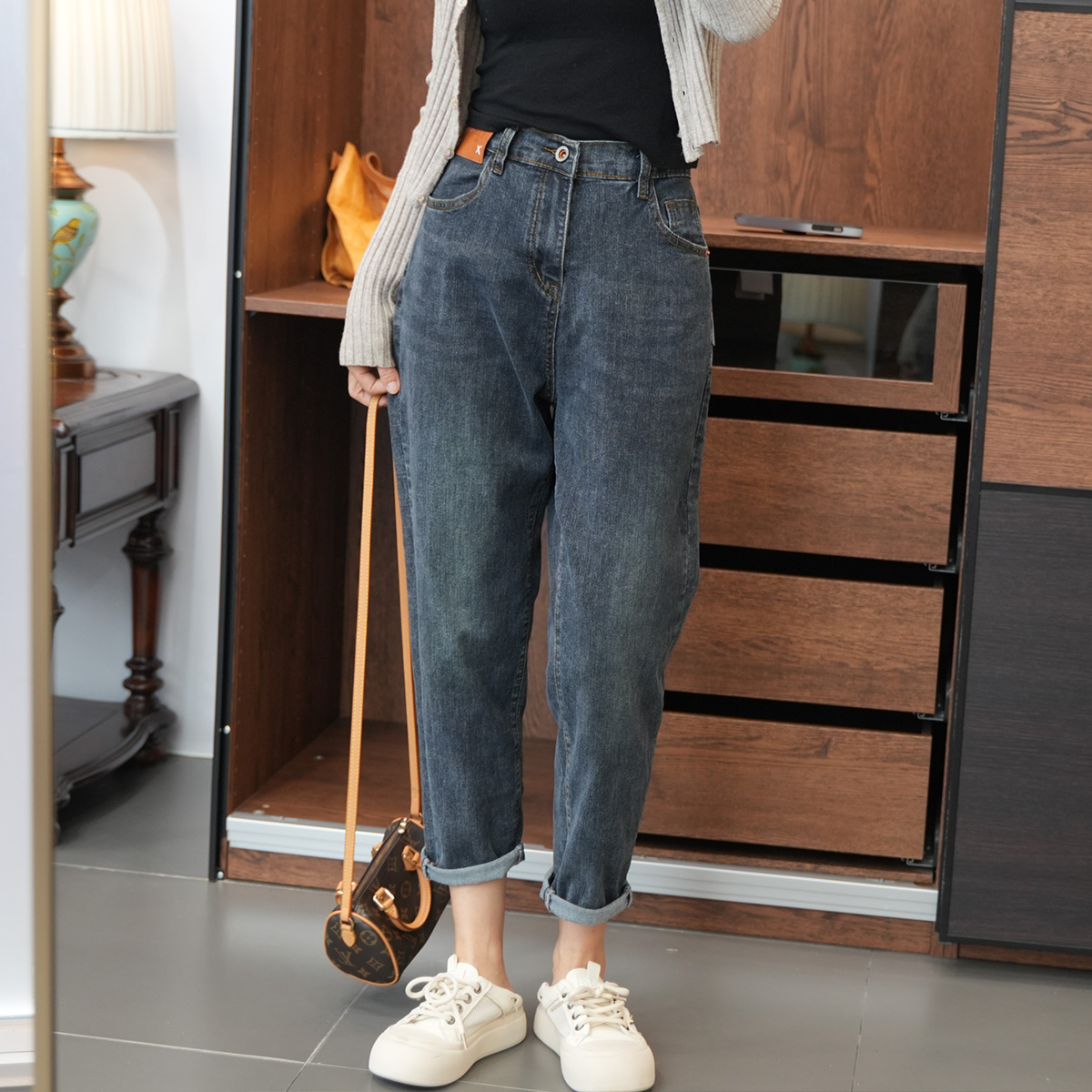 100-200斤 窄版牛仔裤大码女装秋胖mm高弹半松紧腰贴标时尚哈伦裤