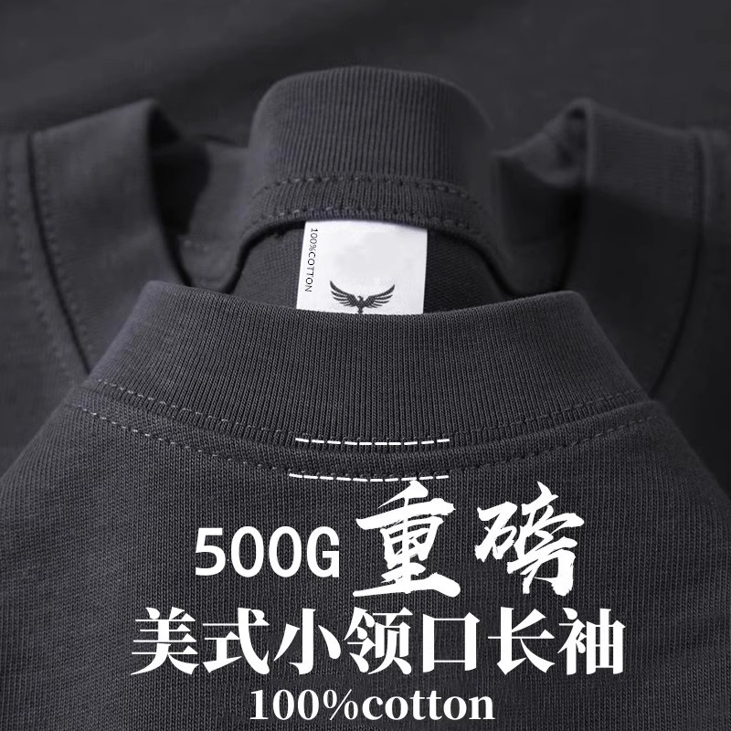 【两件装】500g重磅新疆棉长袖t恤男女纯棉纯色大码基础款打底衫
