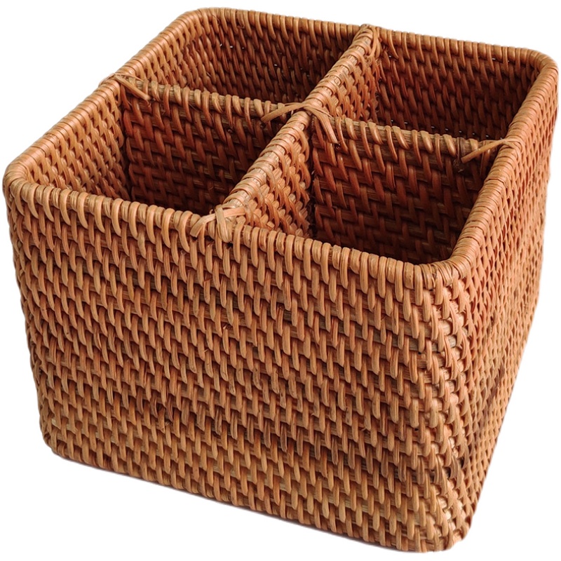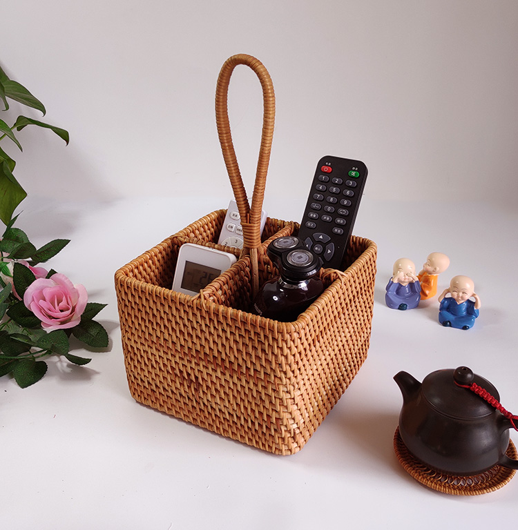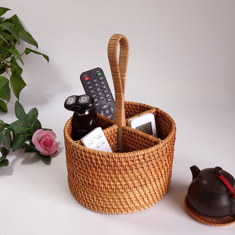 越南手工藤编遥控器杂物收纳篮客厅茶几桌面收纳盒多用圆形竹篮子