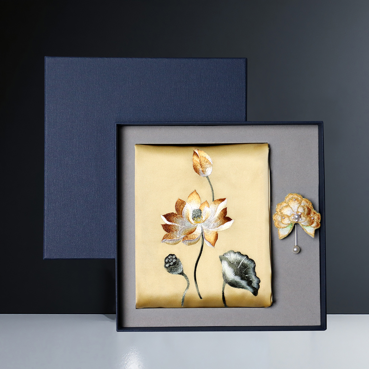 筛月手工苏绣真丝围巾丝巾国风桑蚕丝绸披肩胸针两件套送妈妈婆婆