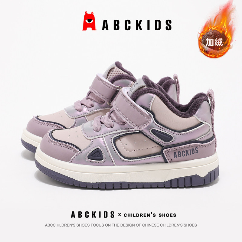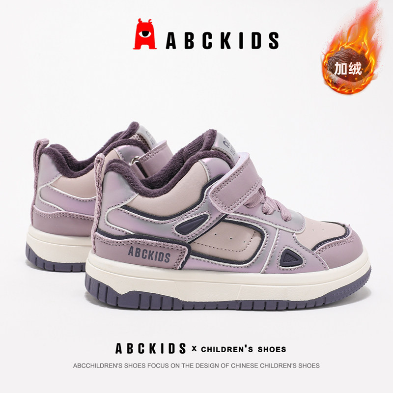 ABCkids童鞋女童鞋子加绒二棉鞋秋冬儿童运动板鞋冬季保暖棉鞋女