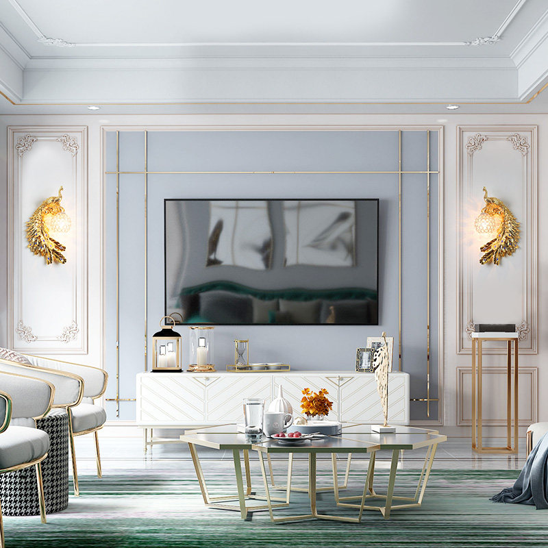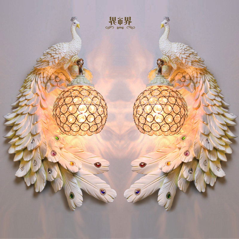 创意孔雀壁灯欧式客厅背景墙楼梯法式轻奢装饰卧室床头灯2024新款