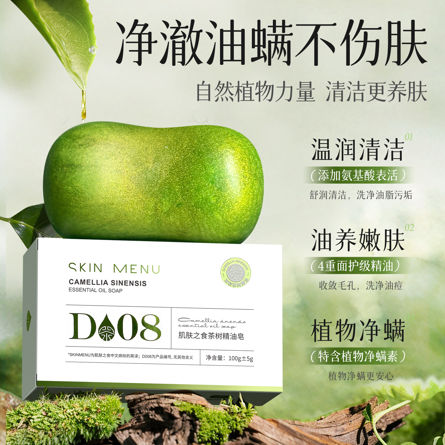 肌肤之食茶树精油香皂控油除螨净痘清洁黑头洗脸洗澡全身用手工皂