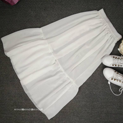 2025夏新款雪纺荷叶百褶半身裙 拼接透单层鱼尾荷叶边中长裙衬裙