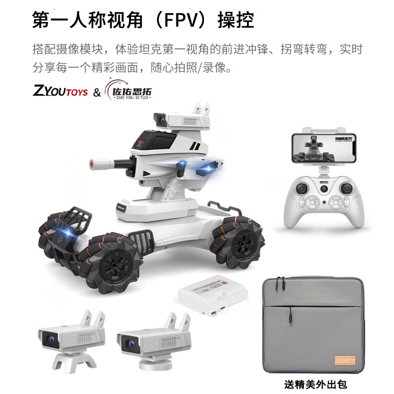 暴风主义智能互动机甲大师儿童遥控坦克四驱可发射水弹摄像玩具车