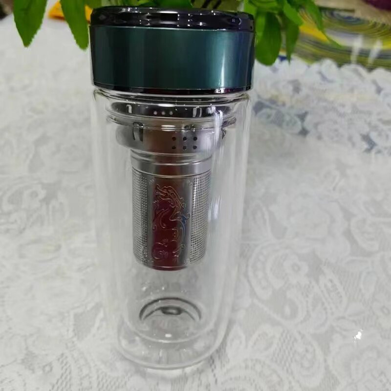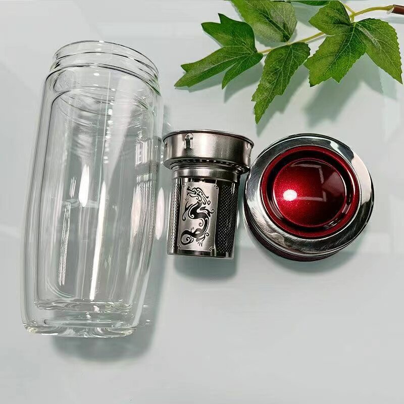 2025新款高档龙网双节网鹅蛋杯双层加厚玻璃杯茶水分离泡茶杯定制