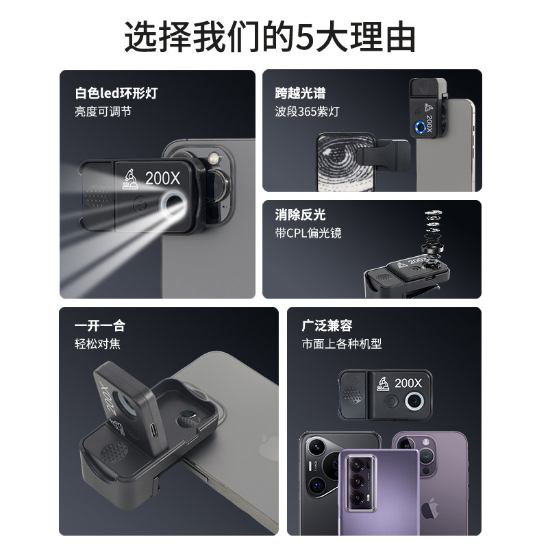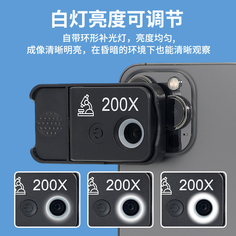 手机放大镜显微镜高清200倍珠宝鉴定专用高倍夹在微距古玩镜头便携式