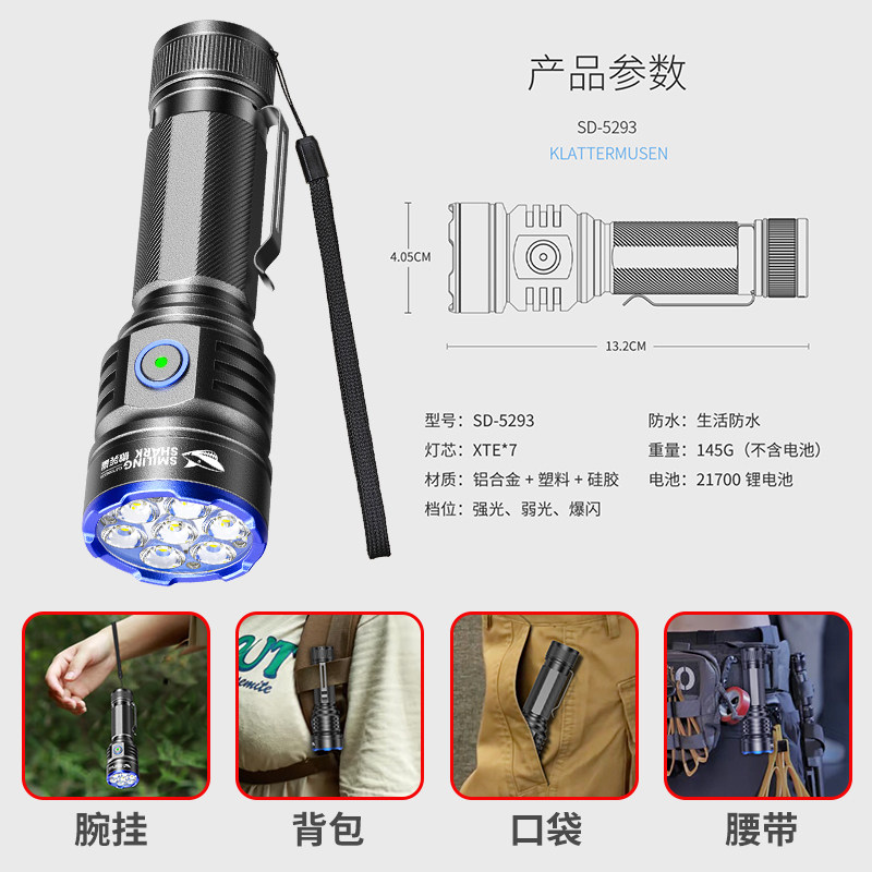 小青龙手电筒强光充电超亮多灯珠聚光战术大功率超长续航远射户外